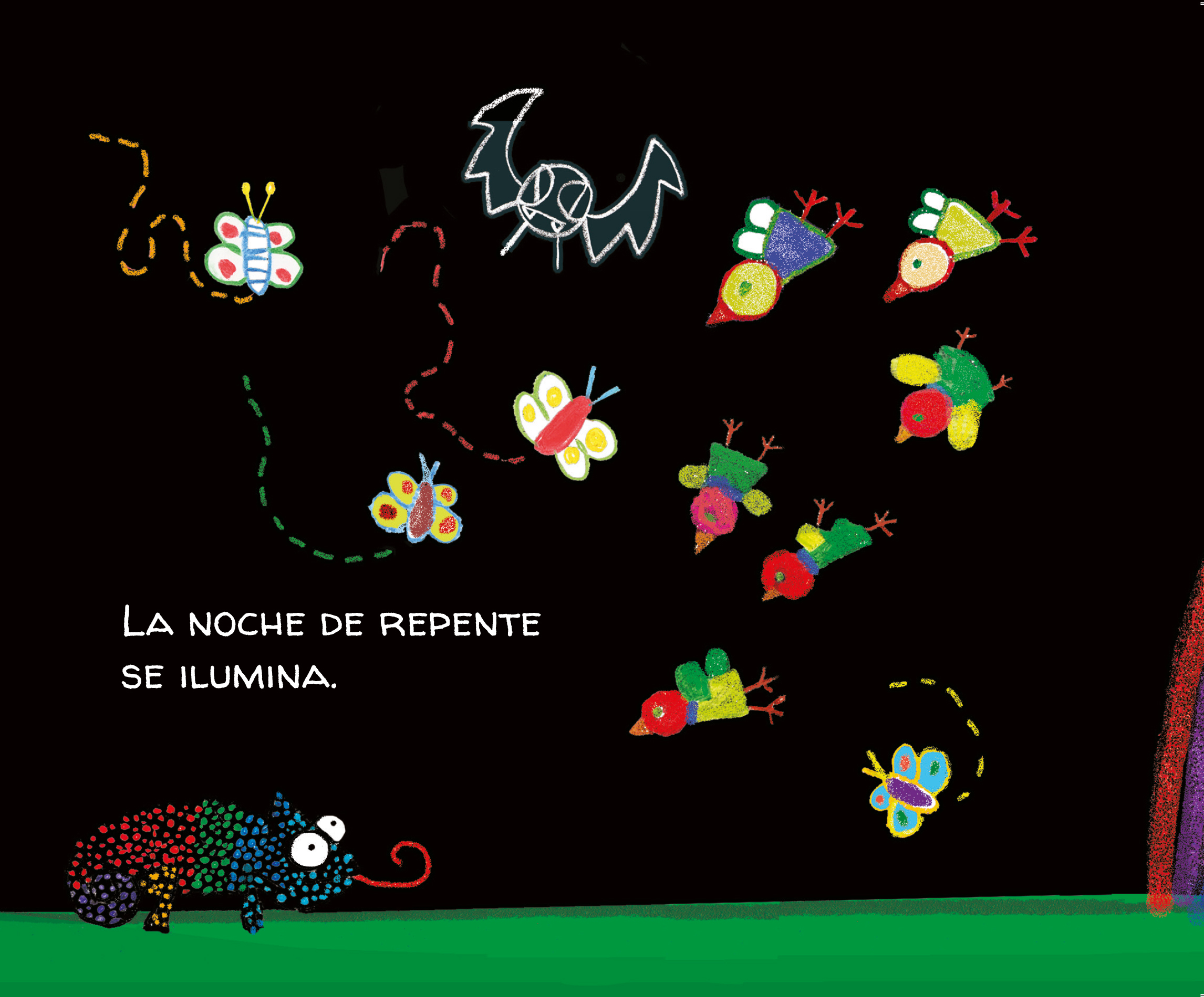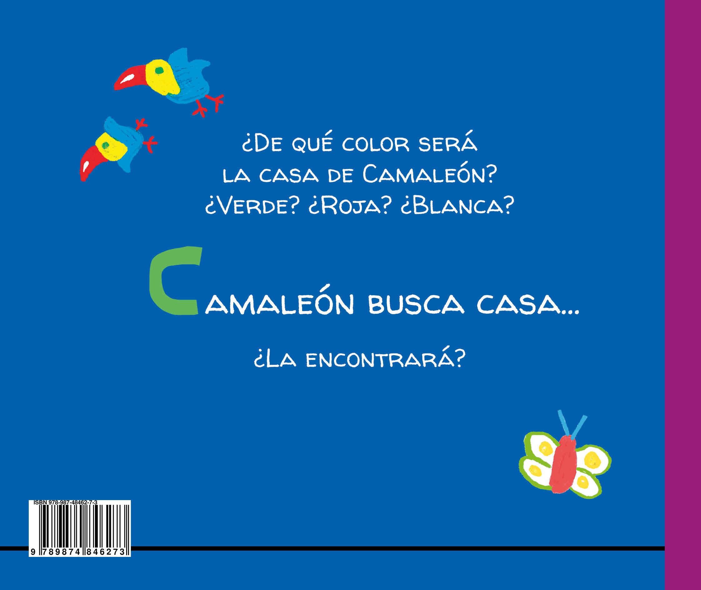 Un libro infantil de 24 páginas para niños entre 0 y 7 años, en el que se explora el mundo de los colores. Y al final del libro, un camaleón para pintar.
